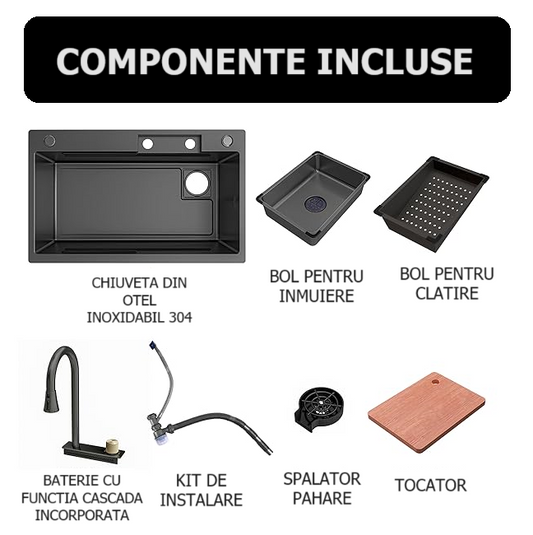 Chiuveta multifunctionala, otel inoxidabil, 75x45cm, negru RV888823
