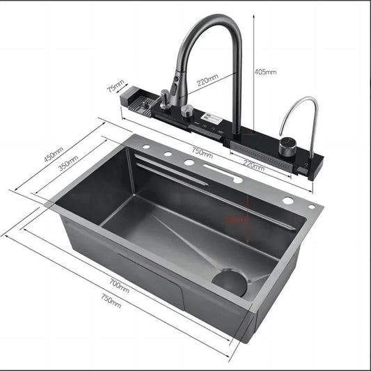Chiuveta multifunctionala, otel inoxidabil 304, LED-uri, 75x46cm, gri antracit RV8888118